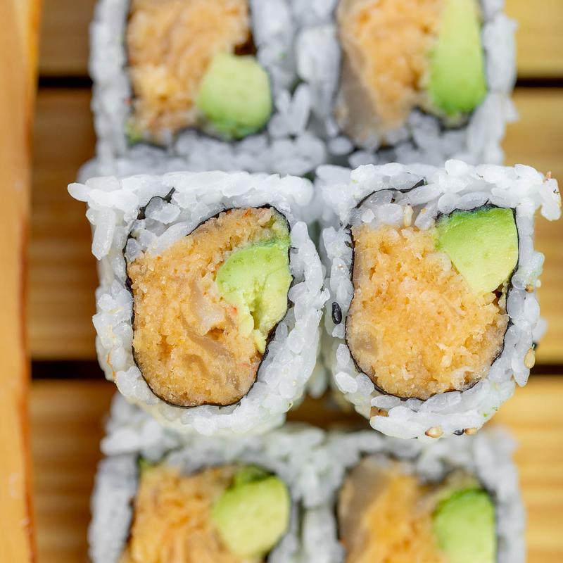Spicy mix, scallions, avocado, masago, and tempura flakes.